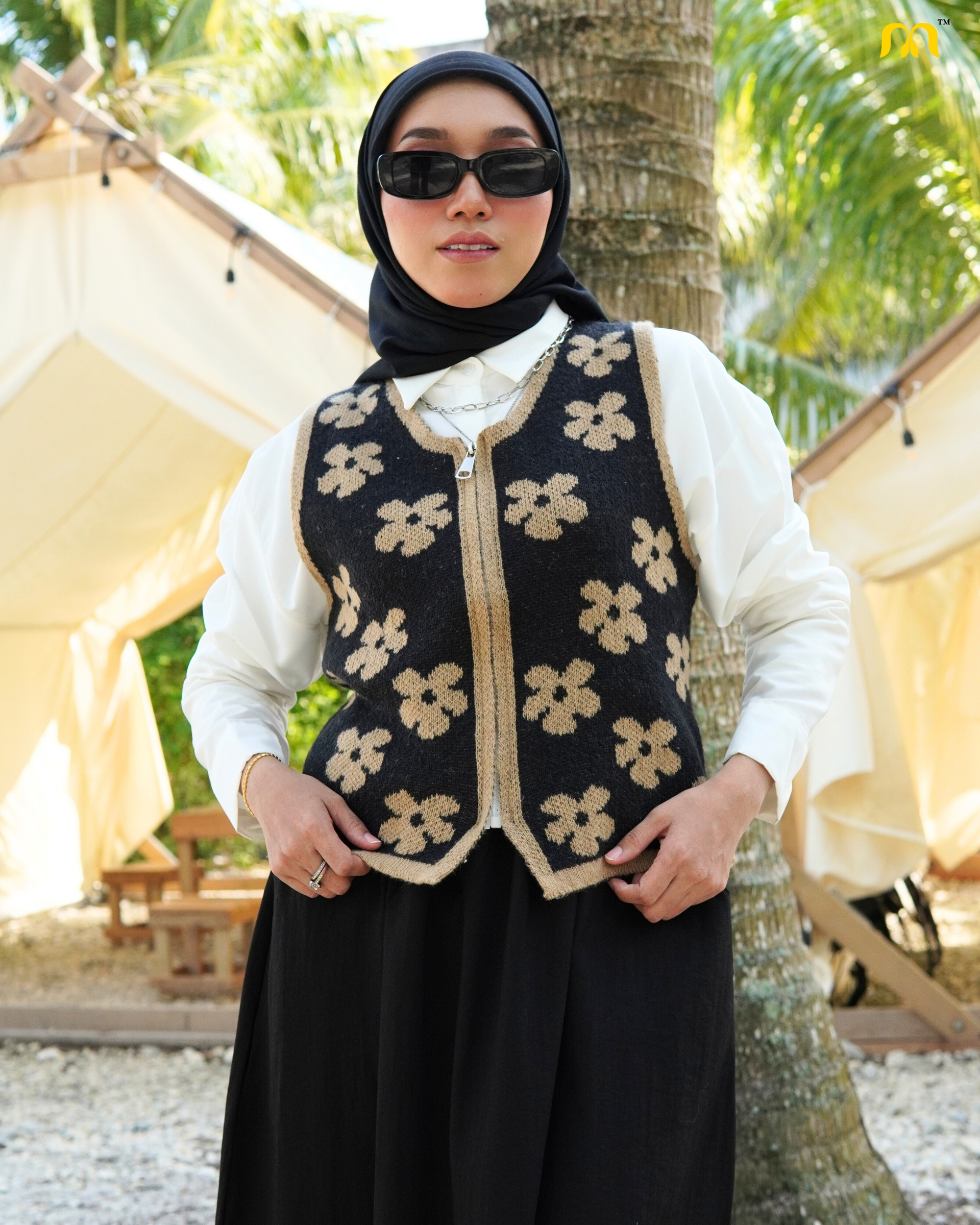 NURULMALL CALLIA TOP KNITWEAR CARDIGAN FLOWER VEST